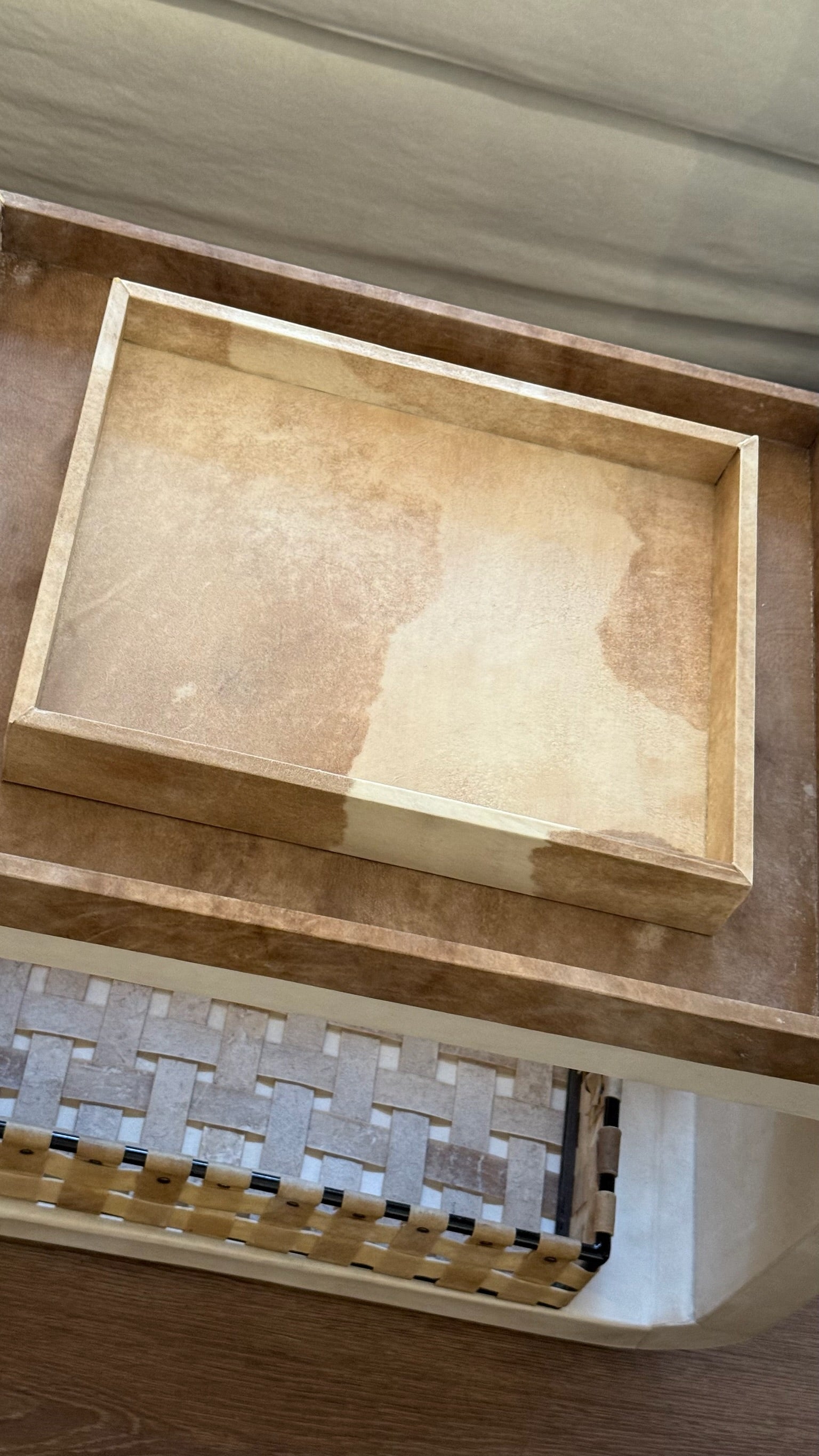 El regalo perfecto para cuando buscás algo clásico pero canchero a la vez. Hecha a mano por expertos artesanos, la bandeja Box de madera forrada en lonja, es ideal para servir el té o exhibir tus libros favoritos en la mesa del living o comedor.