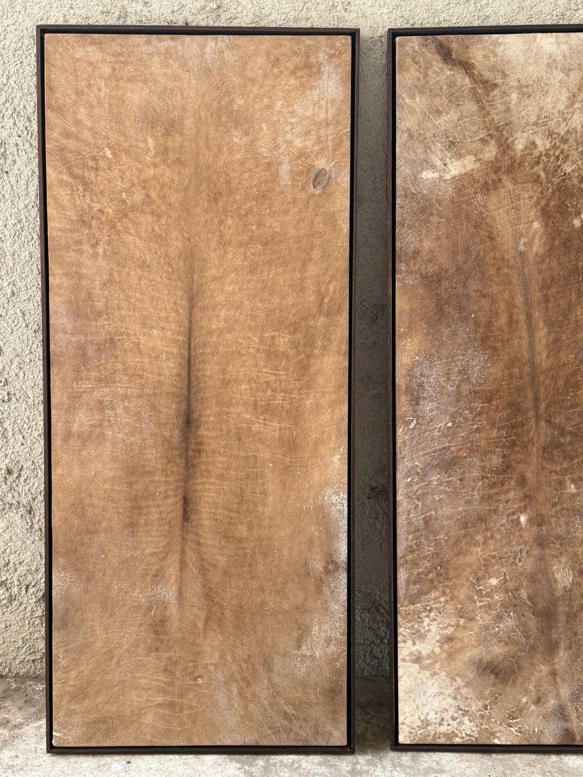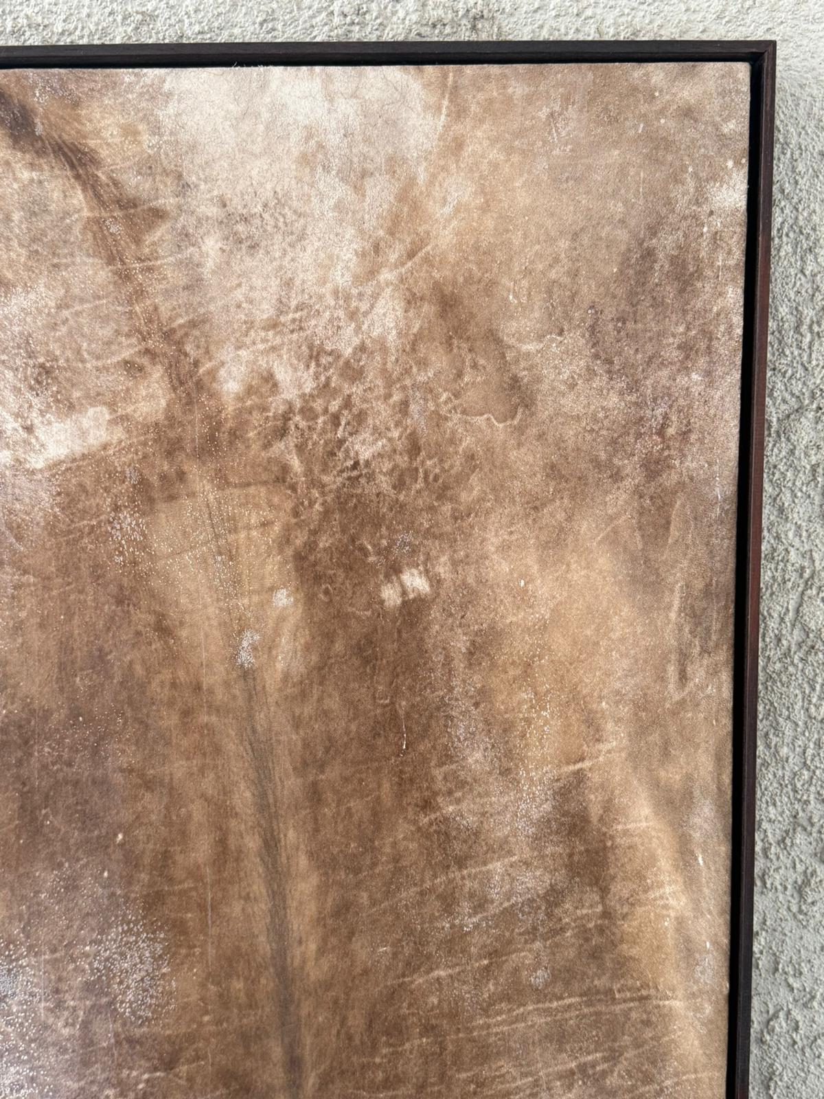 Lonjas de ternero en marco tono chocolate. Al ser un producto natural trabajado de forma artesanal las piezas son únicas, no hay dos cuadros iguales.
