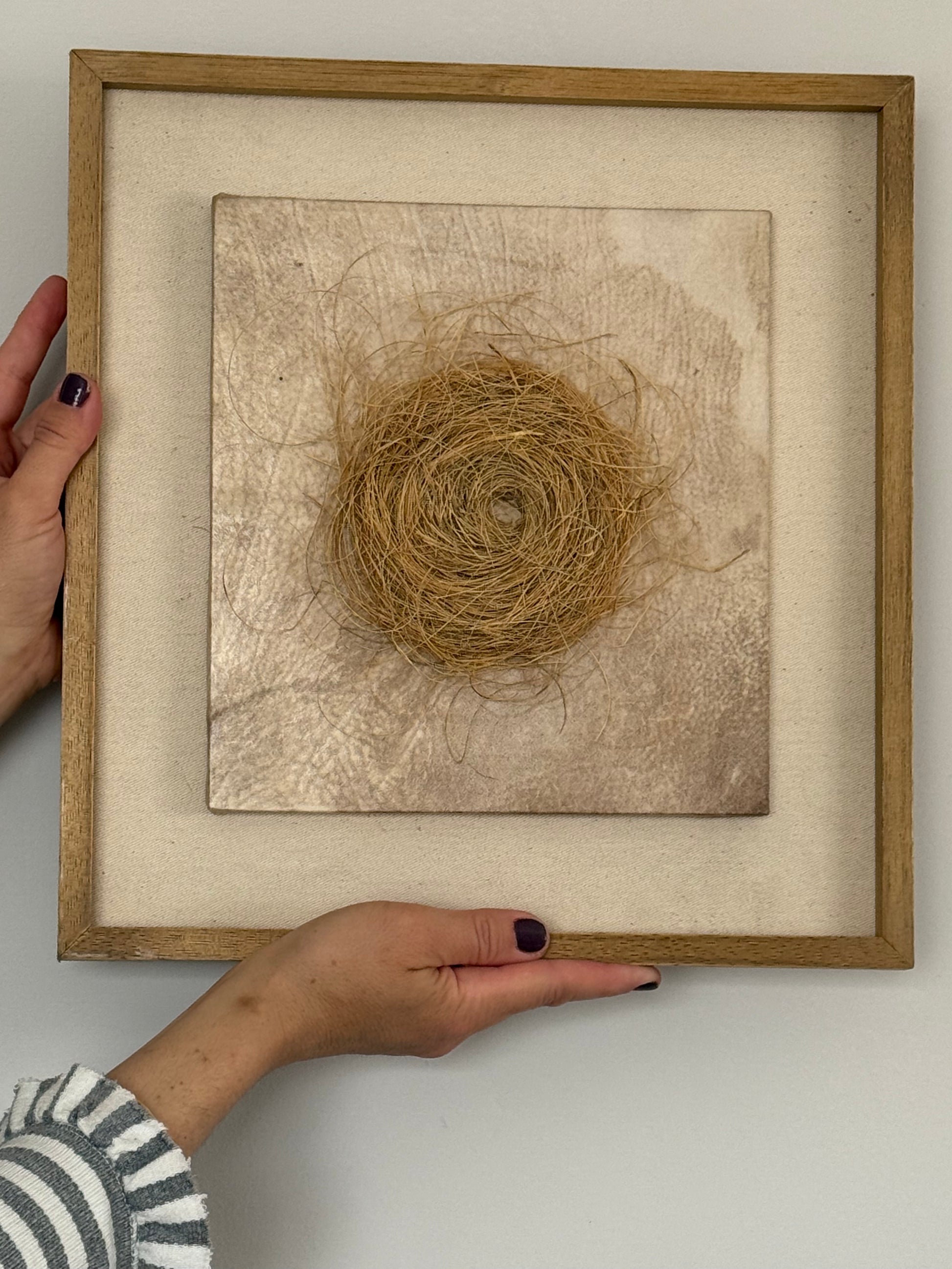 Cuadro en lonja intervenido por la artista uruguaya Ema Young.